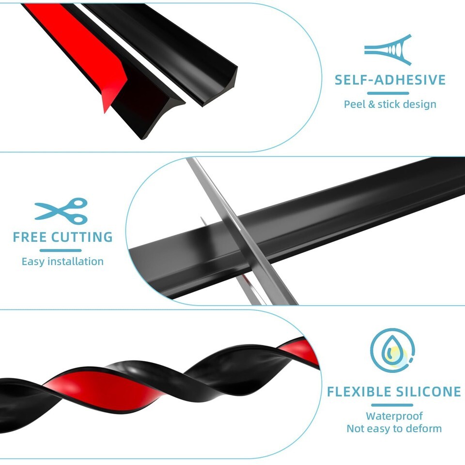Dry and Wet Separation: Shower water blocker adheres to any smooth surface and can be used on shower doors and kitchen sink countertop edges to stop water from running onto the floor. Shower dam barrier can also be used in the gap between the sink and the wall to prevent sewage from seeping in, providing excellent protection for your home environment