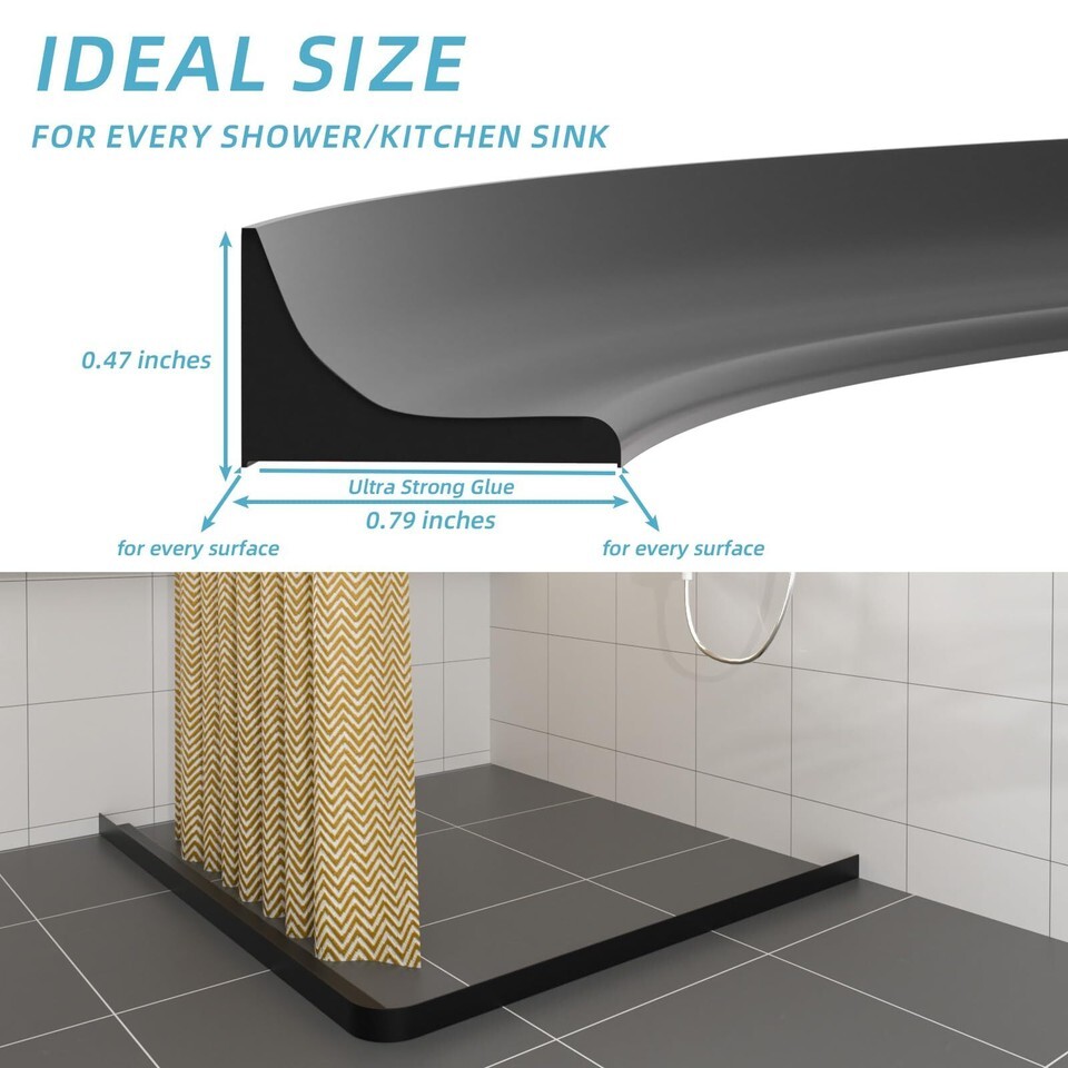 Shower Water Guard Size: Shower water guard measures 0.47 inches (height) x 0.79 inches (width), with a 90-degree right angle edge, perfect for corners. You can also collapsible and stick it at will according to the shape of the furniture, just measure the size you need and then cut splash guard to the required length easily