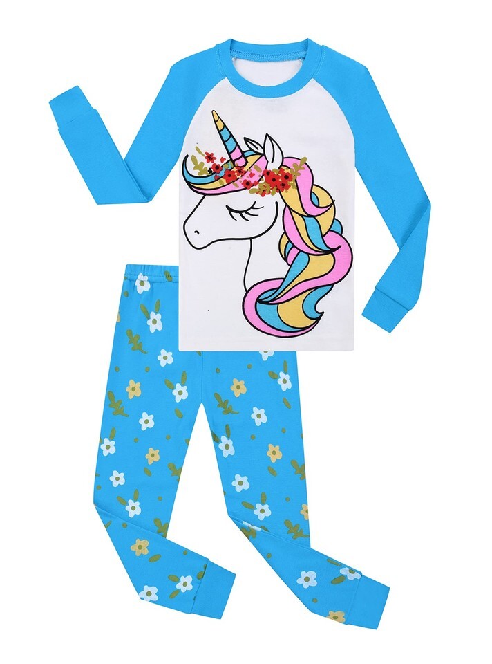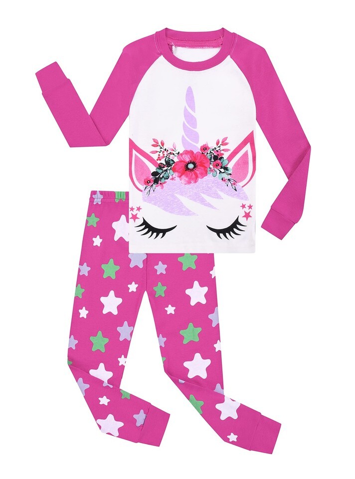 Benaive Girls Cotton Pajamas 4-Piece Set Unicorn Multicolor Size 2T