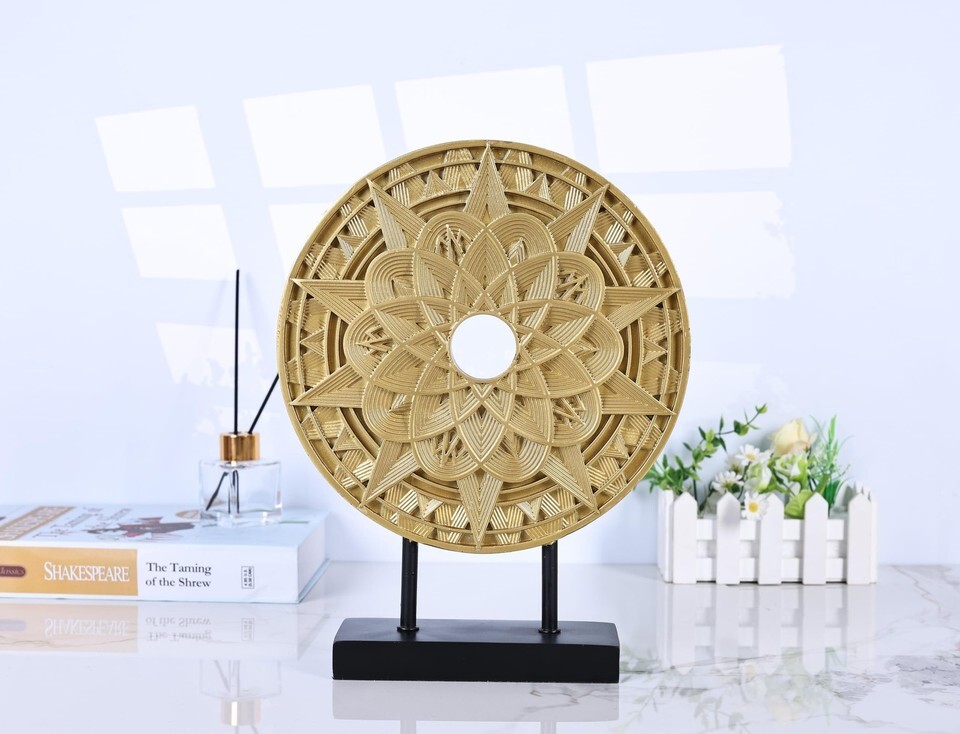 Geometric Mandala Sculpture Black Gold Round Art Decor for Shelf Table Office