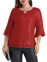 Sparkle Tops for Women - Fabric: Plus Size party top is made of medium elasticity fabric and soft lining make it suitable for most women. This Glitter Party Blouse is embellished with full sequin layers, making this top sparkle every night!