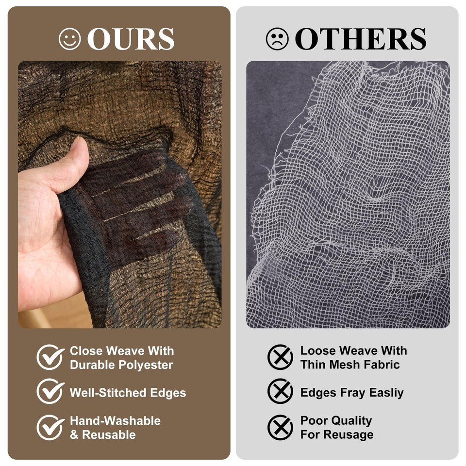 Soft and Elegant LookCrafted from quality, soft cheesecloth fabric and had carefully sewn edges and natural drape, our table runner can create a graceful effect, adding an element of elegance to any occasion.