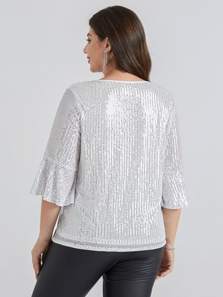 Sparkle Tops for Women - Fabric: Plus Size party top is made of medium elasticity fabric and soft lining make it suitable for most women. This Glitter Party Blouse is embellished with full sequin layers, making this top sparkle every night!