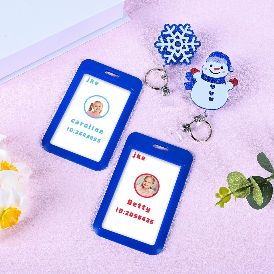 Holiday Retractable Badge Reel with Hard Plastic ID Name Card Badge Holder ,Funny Cute Snowman Snowflake Clip For Nurse Student Christmas Gifts
