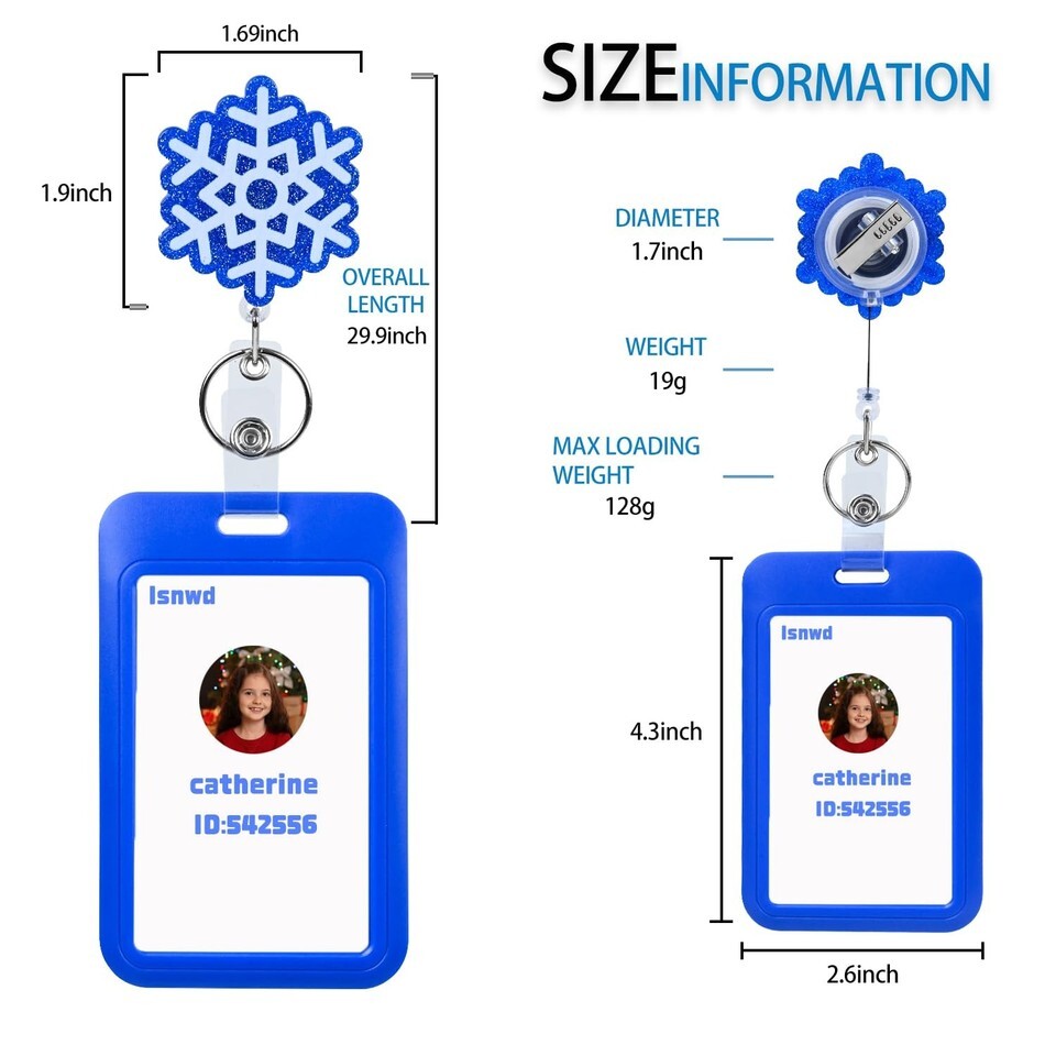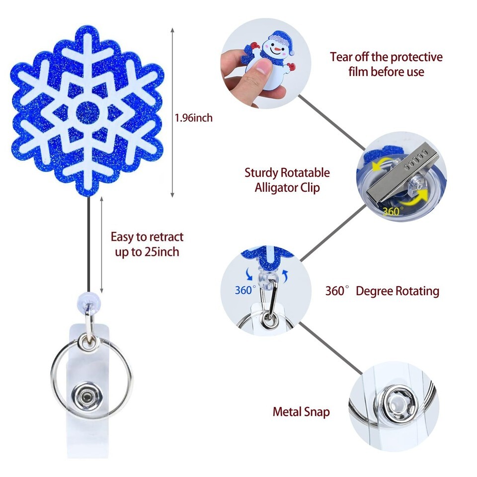 Work WellThe Snowman and Snowflake badge reel are made of shiny acrylic,lightweight to wear,easily clean surface, resistant to fading.