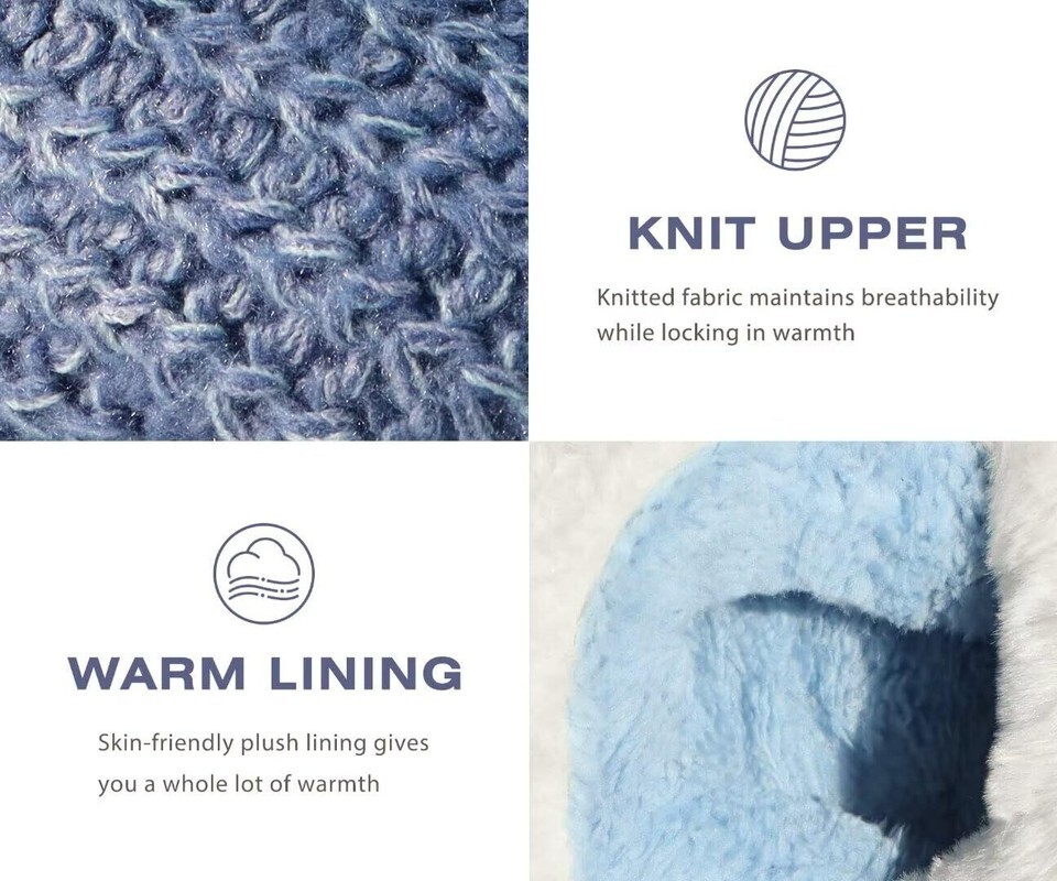 Comfy Knit Slippers: Breathable knit fabric keeps your feet warm without being stuffy, while classic knitted upper slippers for women are perfect for pairing with sweater,knitwear,loungewear or pajamas.