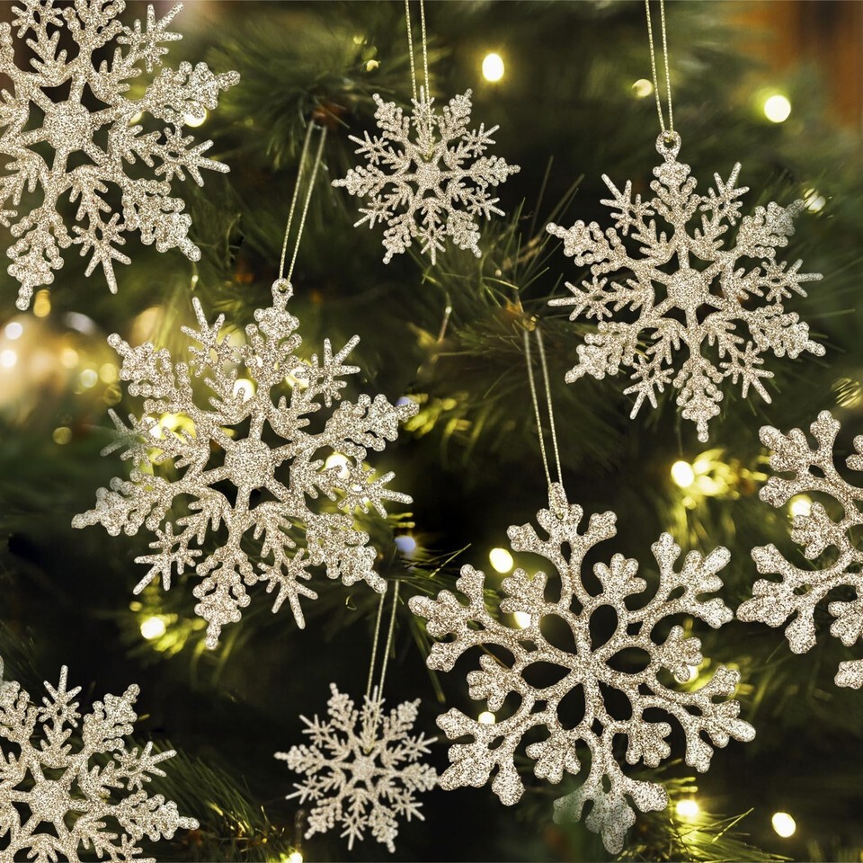 CHRISTMAS TREE SNOWFLAKES: Featuring sparkly glitters on the surface, these white snowflakes tree ornaments add much more sparkle to your Christmas tree decorations, various sizes give a nicer variety on the tree, just let it snow