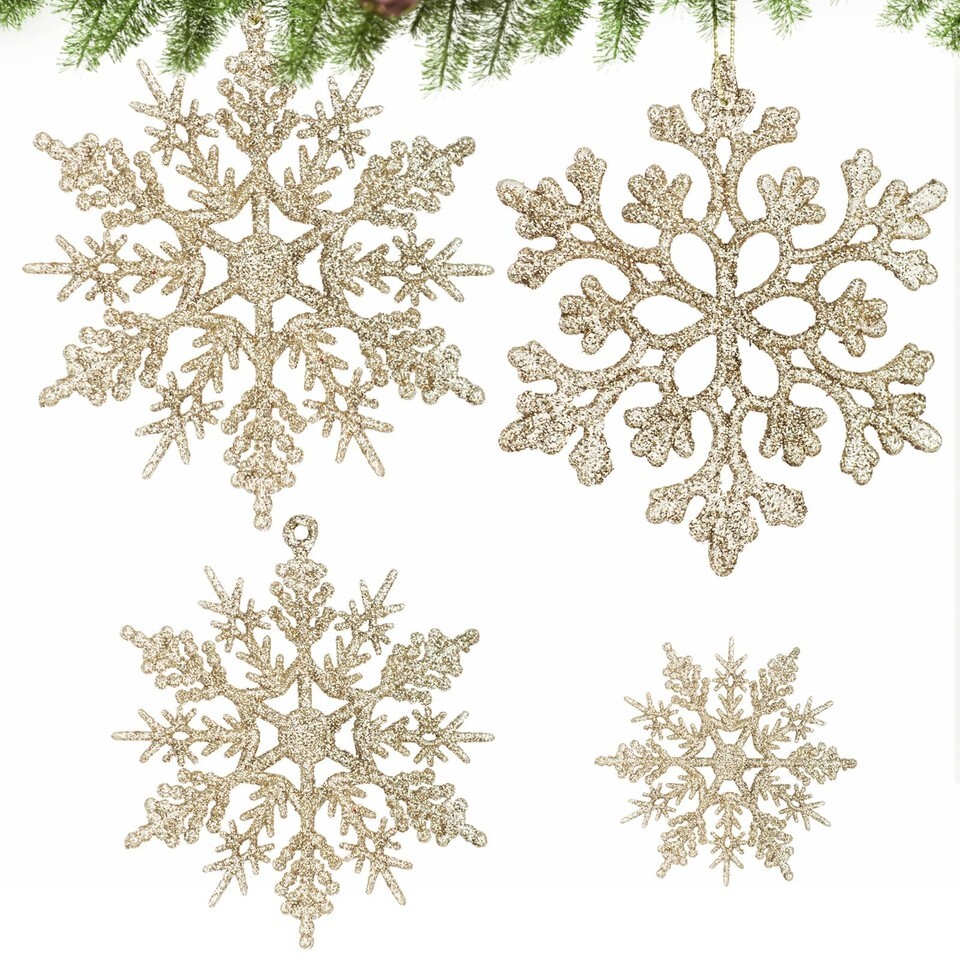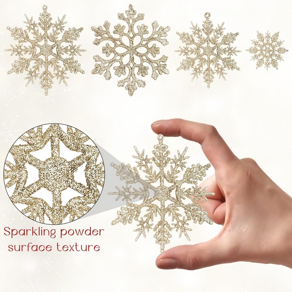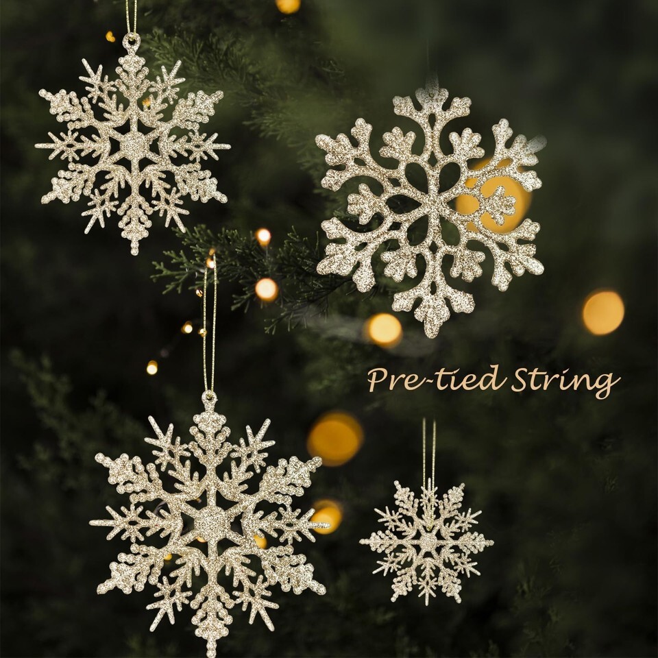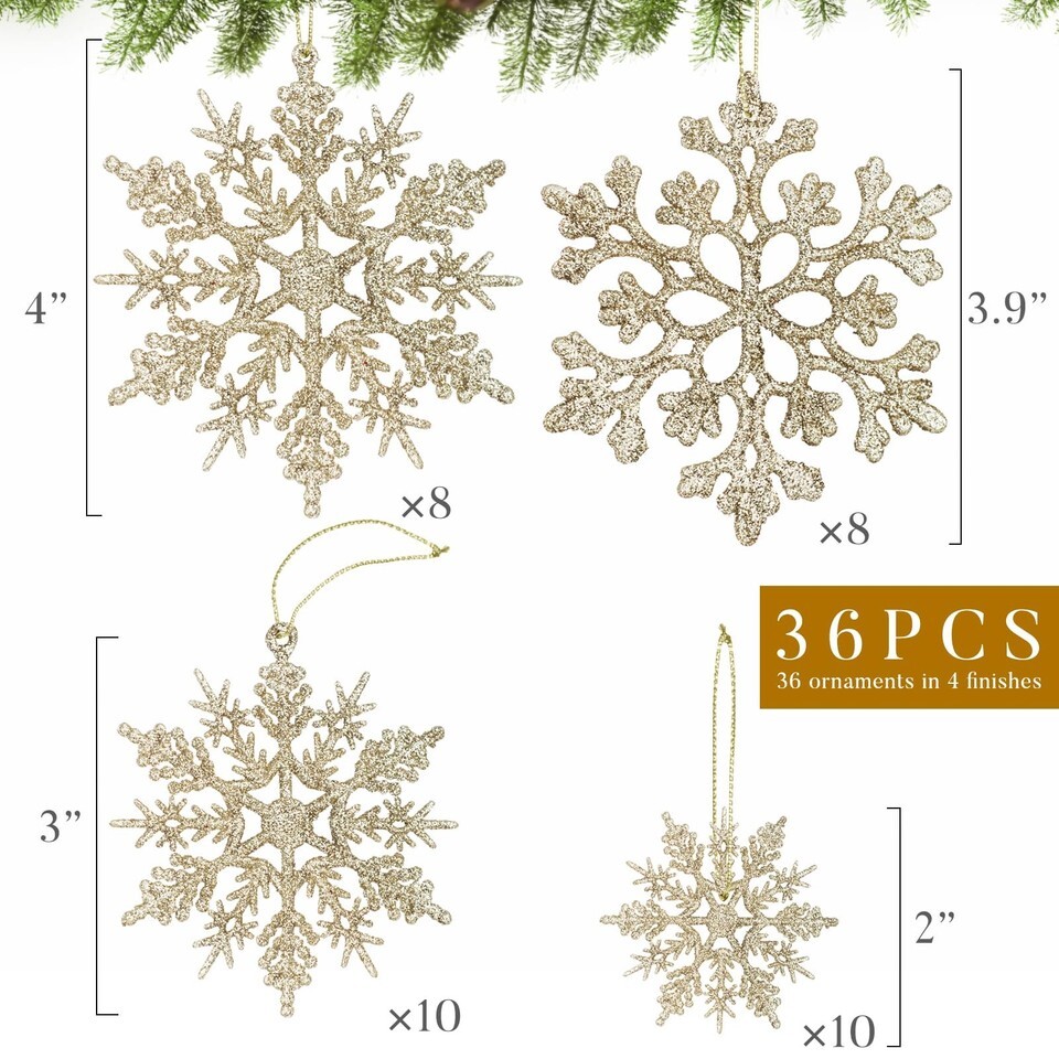 Langley 36pcs Christmas Snowflake Ornaments Set Glitter Plastic Snow Flakes Ornaments for Christmas Tree Decorations 4 Size Varies Craft Snowflakes