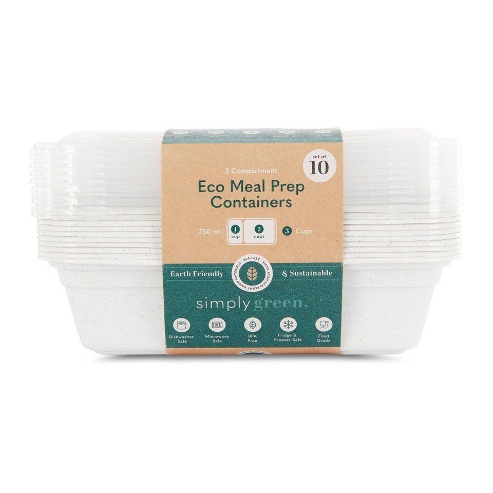 Take your meal prepping to the next level with the Simply Green 20-Piece Meal Prep Container Set! This set includes 10 reusable meal prep containers and 10 clear lids making it perfect for large meal prep batches food storage catering or restaurant use. Each 39 oz container features a 2-section divided design (2 cups + 1 cup) for portion control organized food separation and mess-free storage. Made from eco-friendly BPA-free GRS-certified materials (PP + 10% wheat straw) these containers offer a durable reusable and sustainable alternative to single-use plastics. ? Set Includes: 10 meal prep containers with 10 clear lids Capacity: 39 oz. (2+1 cup sections) per container Material: PP + 10% Wheat Straw (BPA-Free GRS-Certified) ? Dimensions: 2.17 (H) x 6.69 (W) x 4.72 (D) ? Food-Safe Durable: Microwave-Safe ? Heat meals safely (without the lid). Freezer-Safe ? Preserve food freshness. Dishwasher-Safe (Top Rack) ? Easy cleaning for hassle-free use. Designed for meal prepping portio