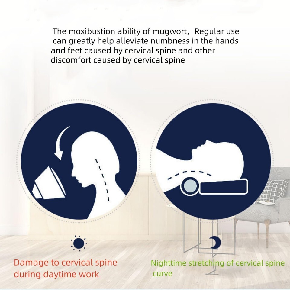 Ai Cao neck pillow, filled with wild Ai Cao, inheriting traditional craftsmanship and meticulously processed. Ai has the functions of warming meridians, unblocking meridians, dispelling cold, and removing dampness The neck roll pillow has natural traction on the physical surface, fits the shoulder neck curve, lifts the cervical spine, helps restore normal curves, and effectively relaxes muscles and ligaments. Persist in using it for a few hours every day Cultivate a healthy cervical spine Nbsp; The outer pillowcase of the neck pillow can be washed with water. It is recommended to sunbathe once a month to maintain a comfortable sleep. Mix the lining evenly before use. Cotton and linen This fabric provides intimate care, sleep aid, and peace of mind, making it both convenient and comfortable to use