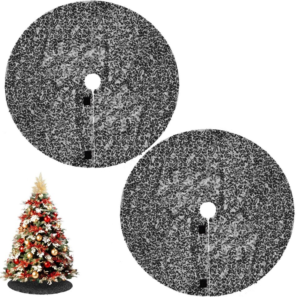 2 Pcs Black Sequin Tree Skirt 15 Inch Glitter Shiny Christmas Decoration