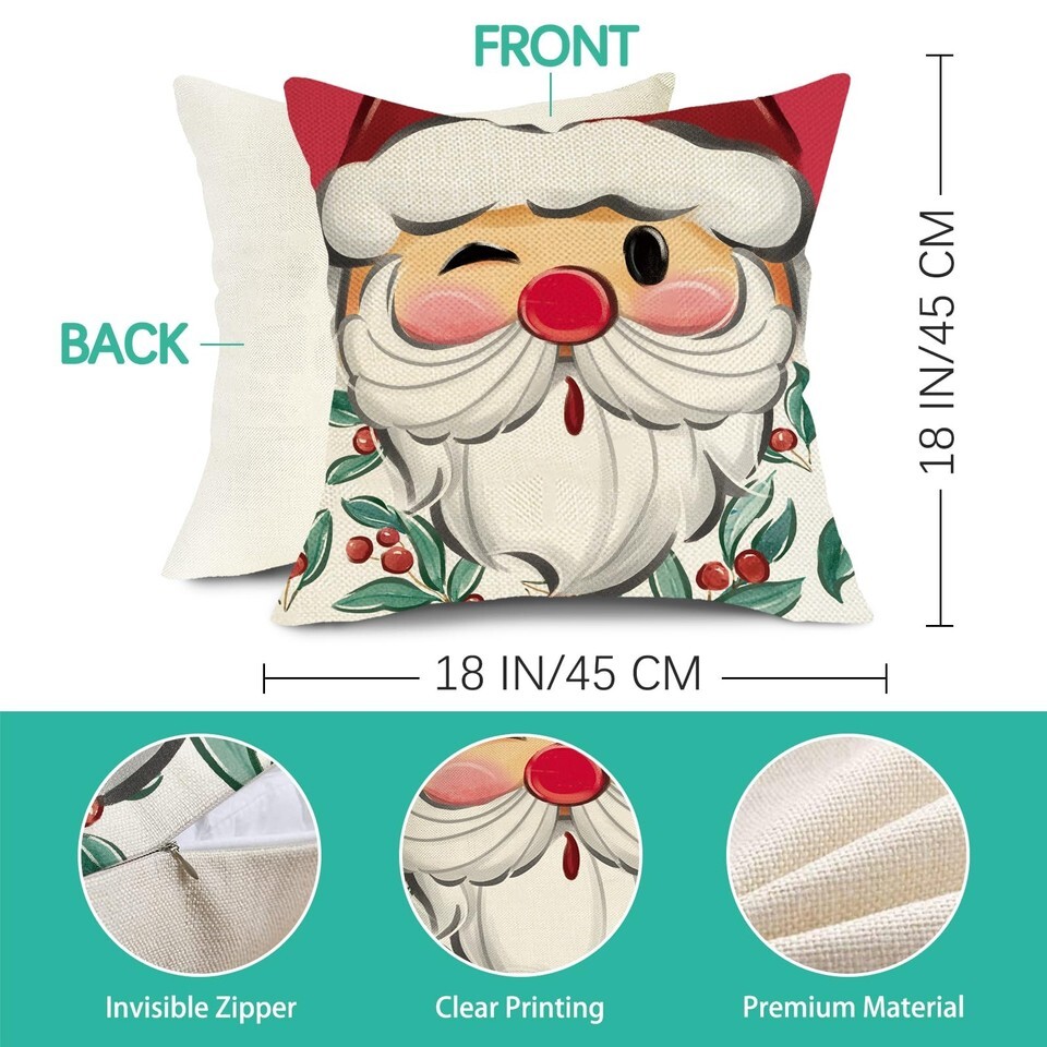Fjfz Christmas Santa Mrs Claus Throw Pillow Covers 20x20 Green Set of 4