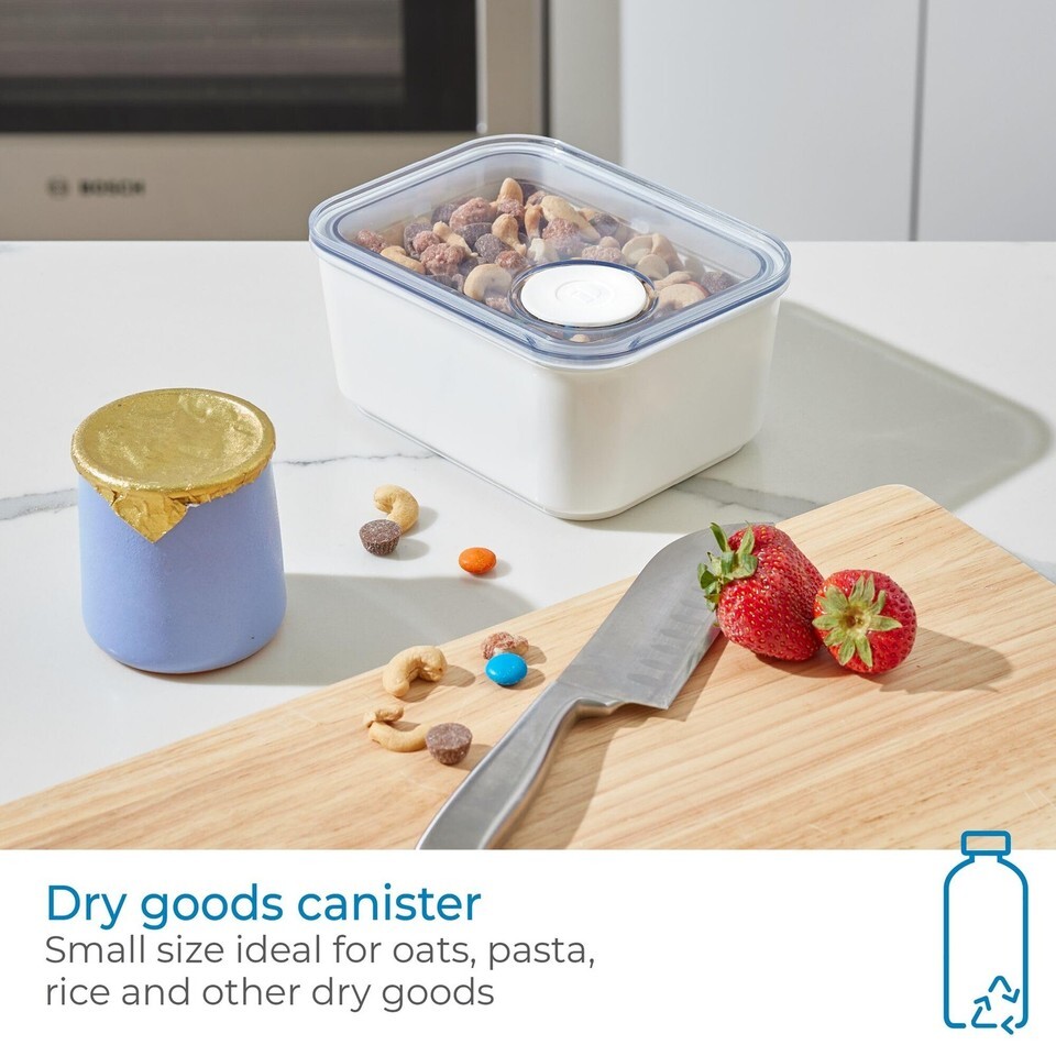 SMALL CANISTER FOR KITCHEN Achieve complete kitchen organization with the iDesign Dry Goods Canister with Lid; great for organizing loose dry goods in the pantry or cabinet