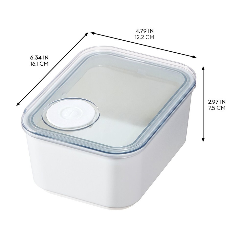 EFFICIENT SIZE Measuring 6.34" L x 4.79 W x 2.97 H, the plastic food container adds instant kitchen storage to your pantry or cabinet