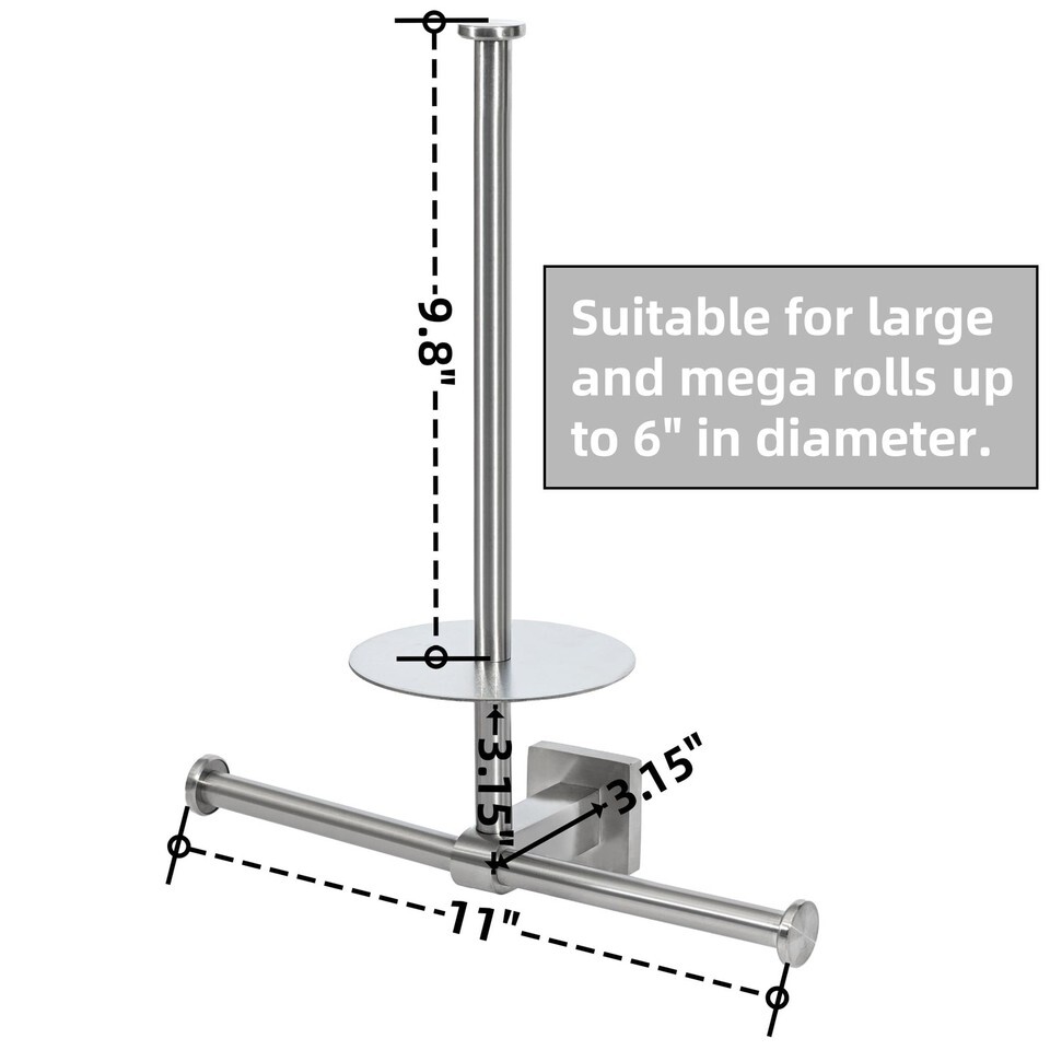 Large size: This bathroom double roll toilet paper dispenser can store 4 rolls of toilet tissue with a diameter of 6 in.Perfect for storing mega and regular paper rolls in the bathroom.