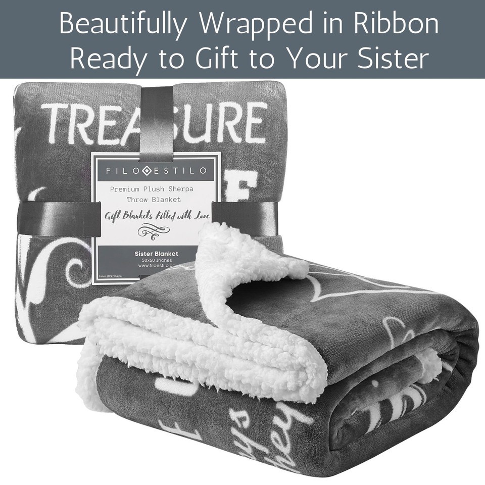 Sister Gifts All Wrapped Up: The soft, cozy blankets are tied with a lovely coordinating ribbon, so they are ready to gift to your Sis for her birthday, Christmas, Valentines or just to say how much you care any day of the year.