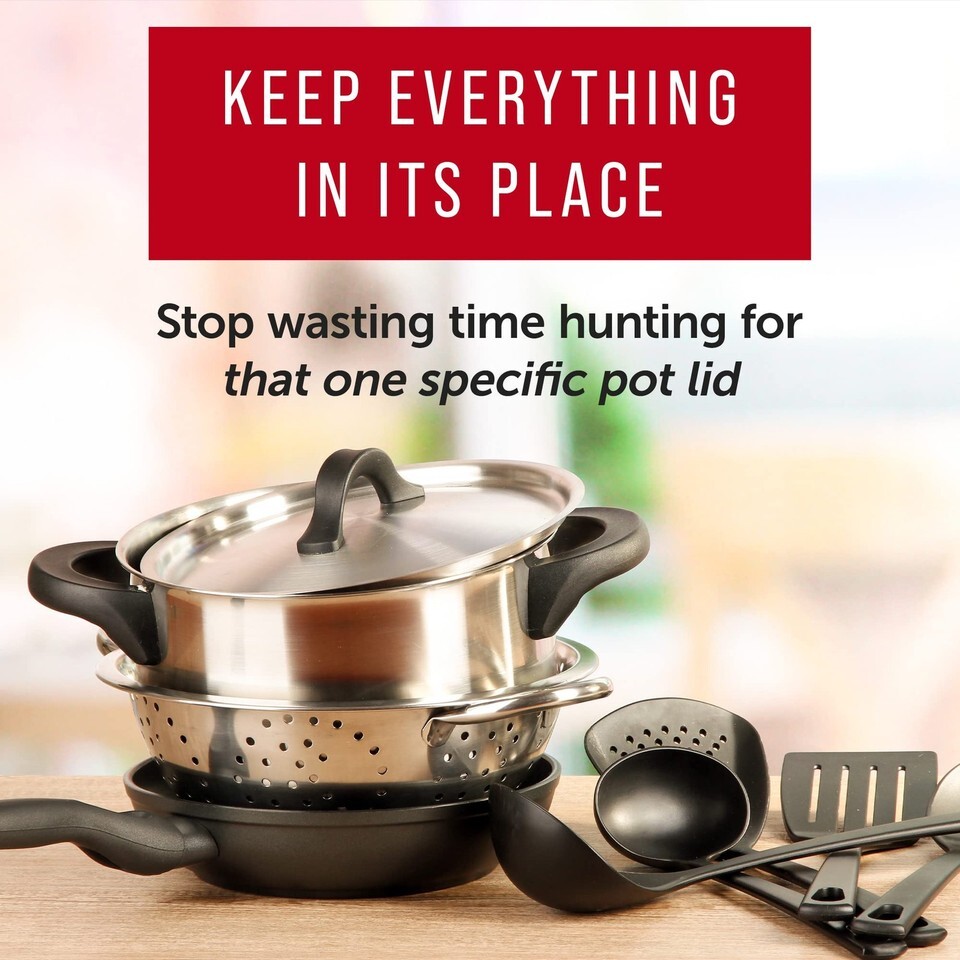Efficient Kitchen Organization: Maintain a tidy kitchen and save time with our pot and pan organizer that ensures every pot lid has a designated place, minimizing clutter and enhancing kitchen efficiency