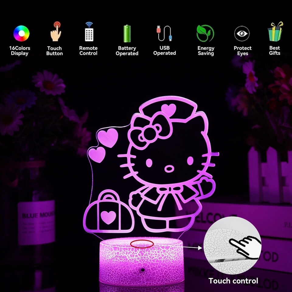 3D Cat Night Light for Kids Room LMHmlylf 16 Colors Remote Touch Lamp Gift