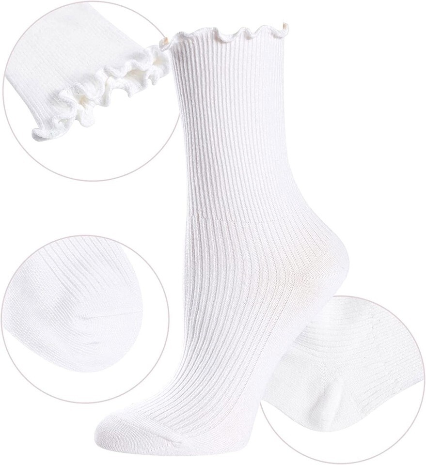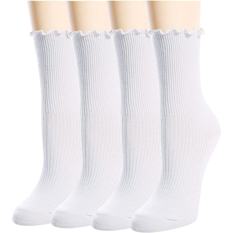 sockfun Women's Ruffle Socks, 80% Cotton, 4 Pack White