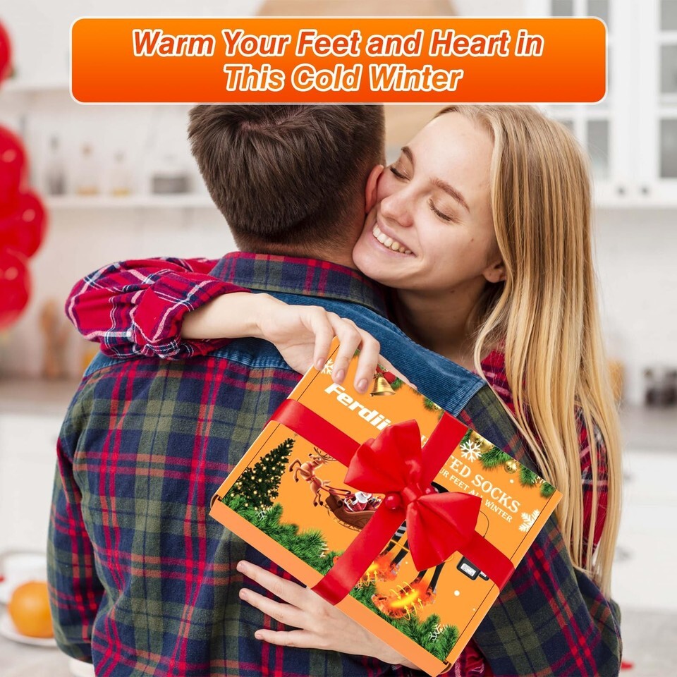 Ferdiiz Rechargeable Heated Socks for Men Women, Upgraded 6000mAh, 4 Levles Electric Heated Sock is Foot Warmer, Machine Washable Thermal Electric Socks, Heated Socks for Hunting, Camping, Skiing