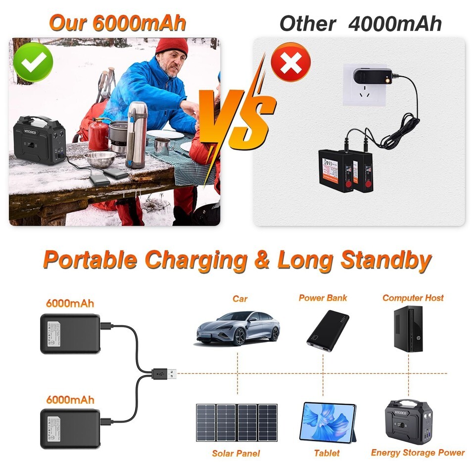 Rechargeable 6000mAH battery The electric socks are equipped with 2 x 5V 6000mAh batteries. The longest working time reaches 14 hours, and you dont need to charge frequently. In addition, the battery can be placed in the pockets on both sides of the battery operated socks, and the buckle design effectively prevents the battery from falling out, which is very convenient. Wearing battery socks can instantly warm you up.