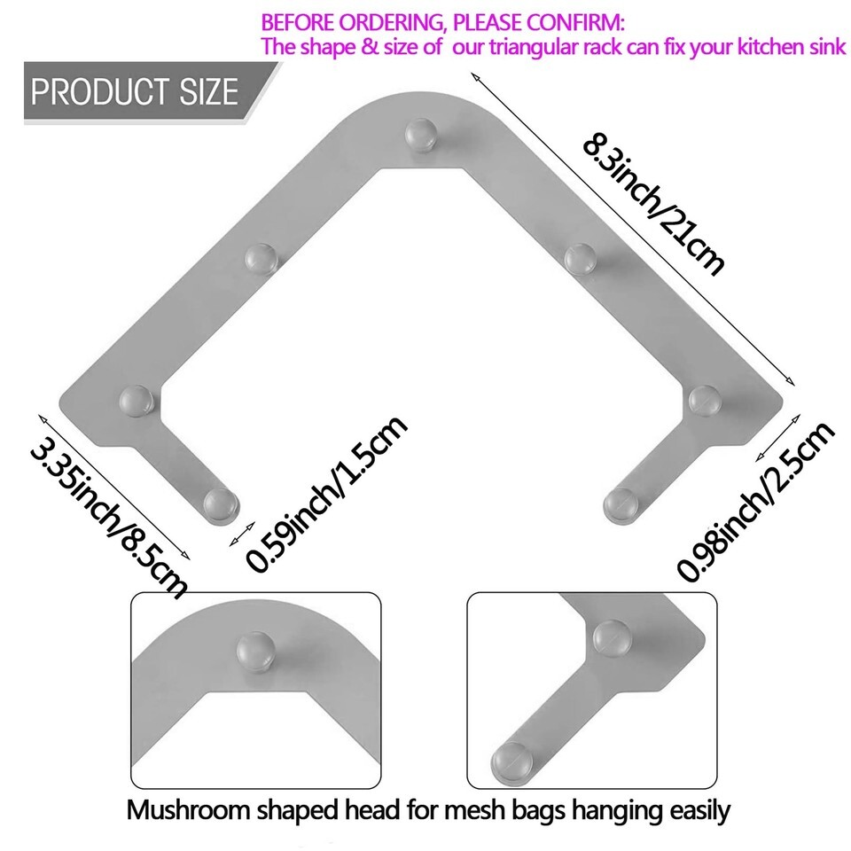 BEFORE ORDERING, PLEASE CONFIRM: Your sink countertop must be flat, as it cannot be attached to uneven surfaces; Your sink must have 90-degree corner; Clean Dry before installation, as wet surfaces will cause the nano double-sided tape not to stick; The shape size of our triangular rack can fix your kitchen sink