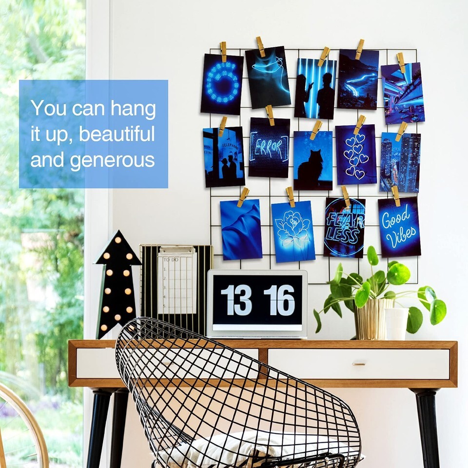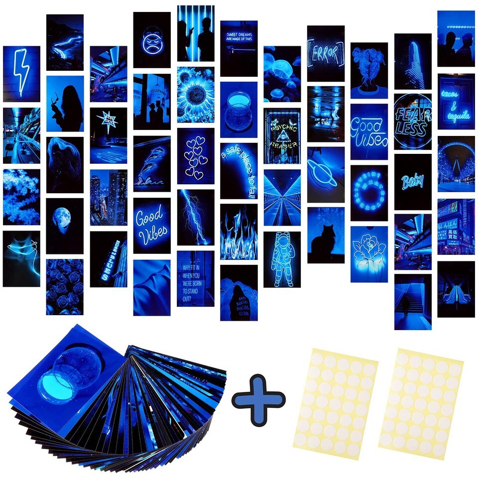 Ctosree 50 Pcs Blue Neon Wall Collage Kit 4x6 Inches Indie Room Decor