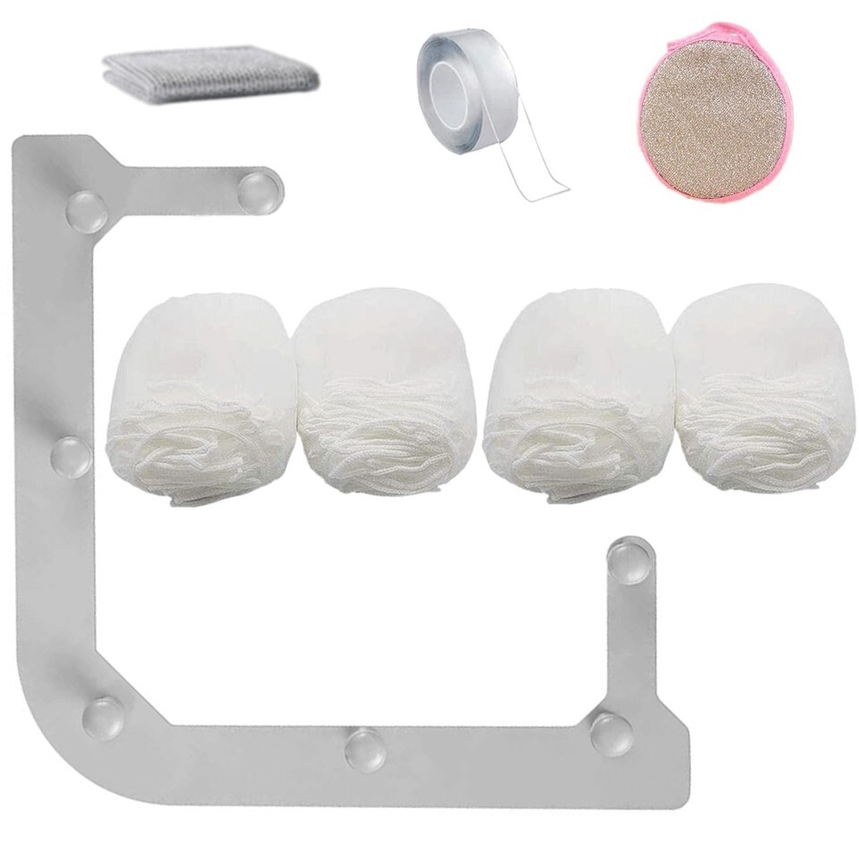 BONUS:Come with a roll of nano double sided tape 1pc dish cloth 1pc scrubbing sponge as gifts, there are several types of color for the scrubbing sponge, the color of scrubbing sponge you receive will be random. The triangular holder can be fixed easily and firmly with the nano double sided tape, it can be removed without residue; the dish cloth and the scrubbing sponge is very useful for your dish cleaning