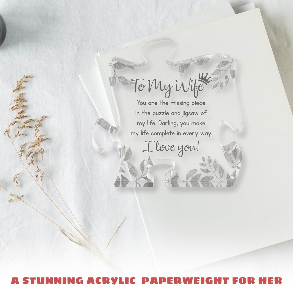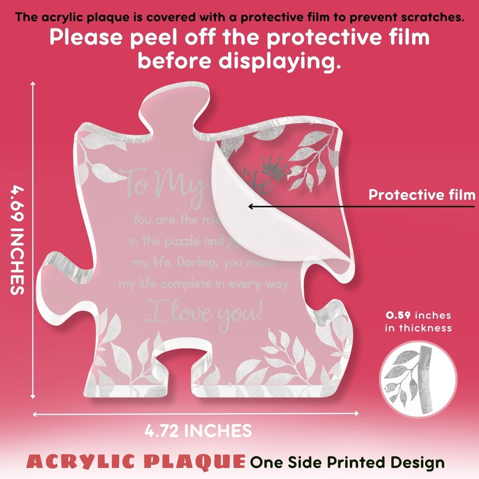PUZZLE-SHAPED ACRYLIC PLAQUE: A timeless and elegant gift, this to my wife acrylic plaque is sweet for commemorating special occasions. Measuring 4.72 inches/ 12.0 cm in height width, and 0.59 inches/ 1.5 cm in thickness, this plaque is a beautifully proportioned piece that complements any decor.