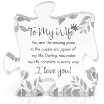 GIFTS FOR WIFE ON ANY OCCASION: With its elegant design and durable acrylic material, this wife puzzle piece plaque makes a meaningful gift that will be cherished for years to come. Suitable for Birthday such as birthday gifts for wife from husband, birthday gifts for her, wife birthday gifts from husband, gifts for her birthday or Valentine's Day like valentine day gift for wife, valentine gifts for wife, valentines day gifts for her wife, valentines day for wife, valentines gifts for wife ...