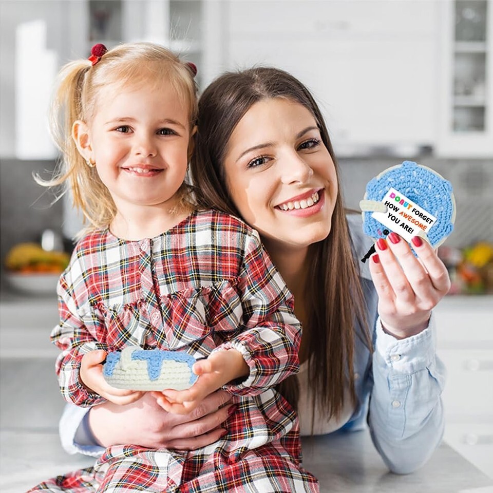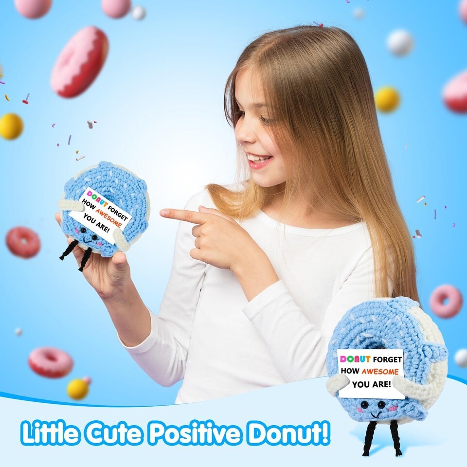RQWZBCHX Handmade Crochet Donut Inspirational Gift Blue Cute Motivational
