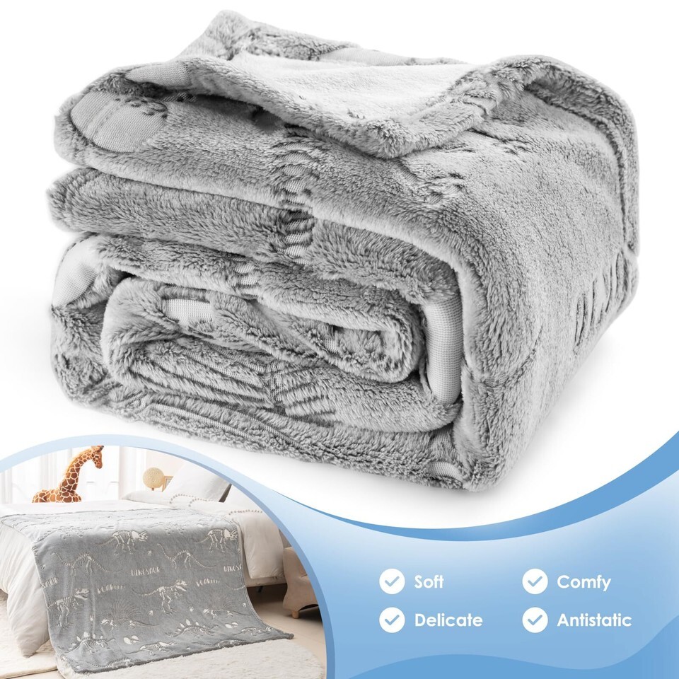 Dinosaur Glow in Dark Blanket Soft Cozy Kids Throw 50x60 Gray