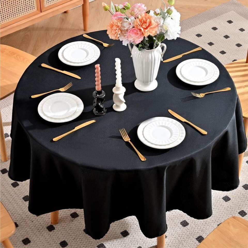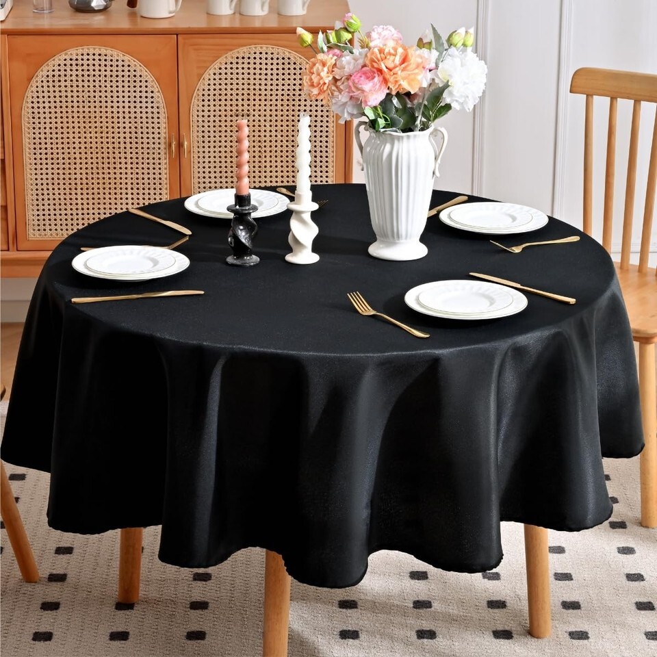 Aironment Round Tablecloth Water Stain Resistant 70 Inch Black