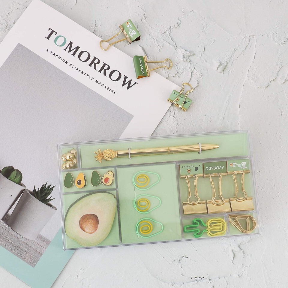 The set includes a variety of stationery with different functions, pens, large paper clips,small paper clips, square pegs, ball pegs and long-tailed clips.Whether it's large paper clips for organizing heavy documents,small paper clips for holding paper in place, or long-tailed clips for sorting and organizing,the set covers the common needs of document management in the office process.