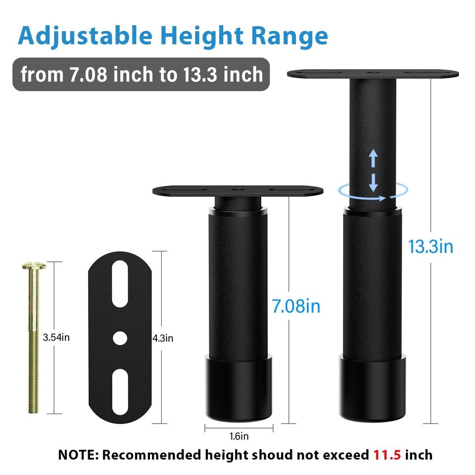 Fixed Bed Slat Support Legs Replacement: These Adjustable Height bed support legs have a simple design and are easy to install. Simply twist the base to adjust the height (adjustment range: 7.08 inches to 13 inches) and secure them to the bed frame or slats using the set screws
