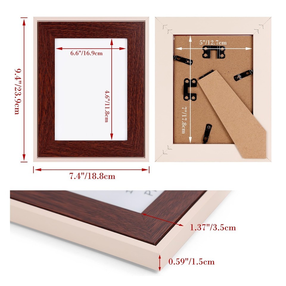 Versatile Design: These 5 by 7 picture frames can be hung on the wall or stand on the table vertically or horizontally. Whether you want to create a gallery wall or simply showcase your favorite snapshots, this multi colored frame set offers versatility and style.