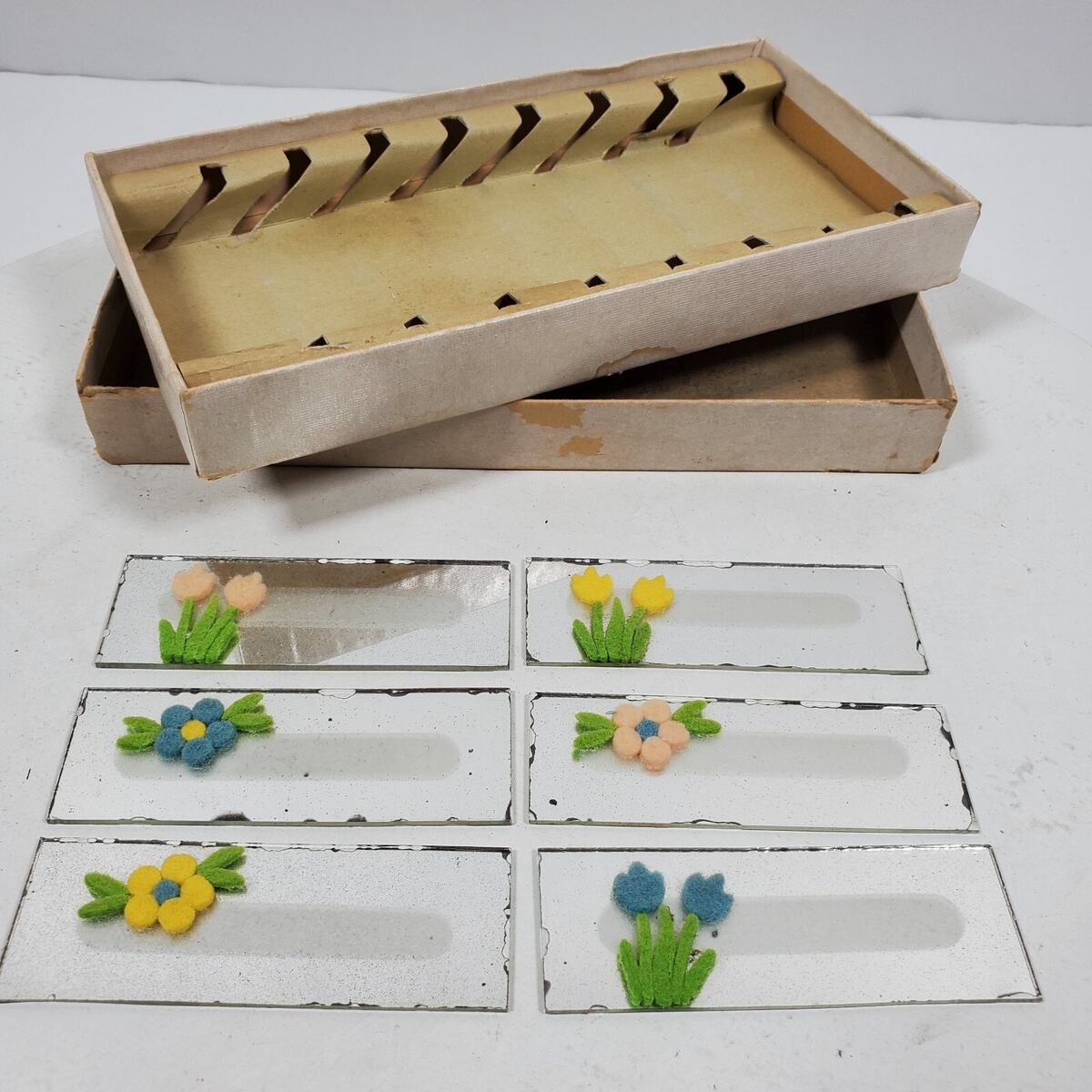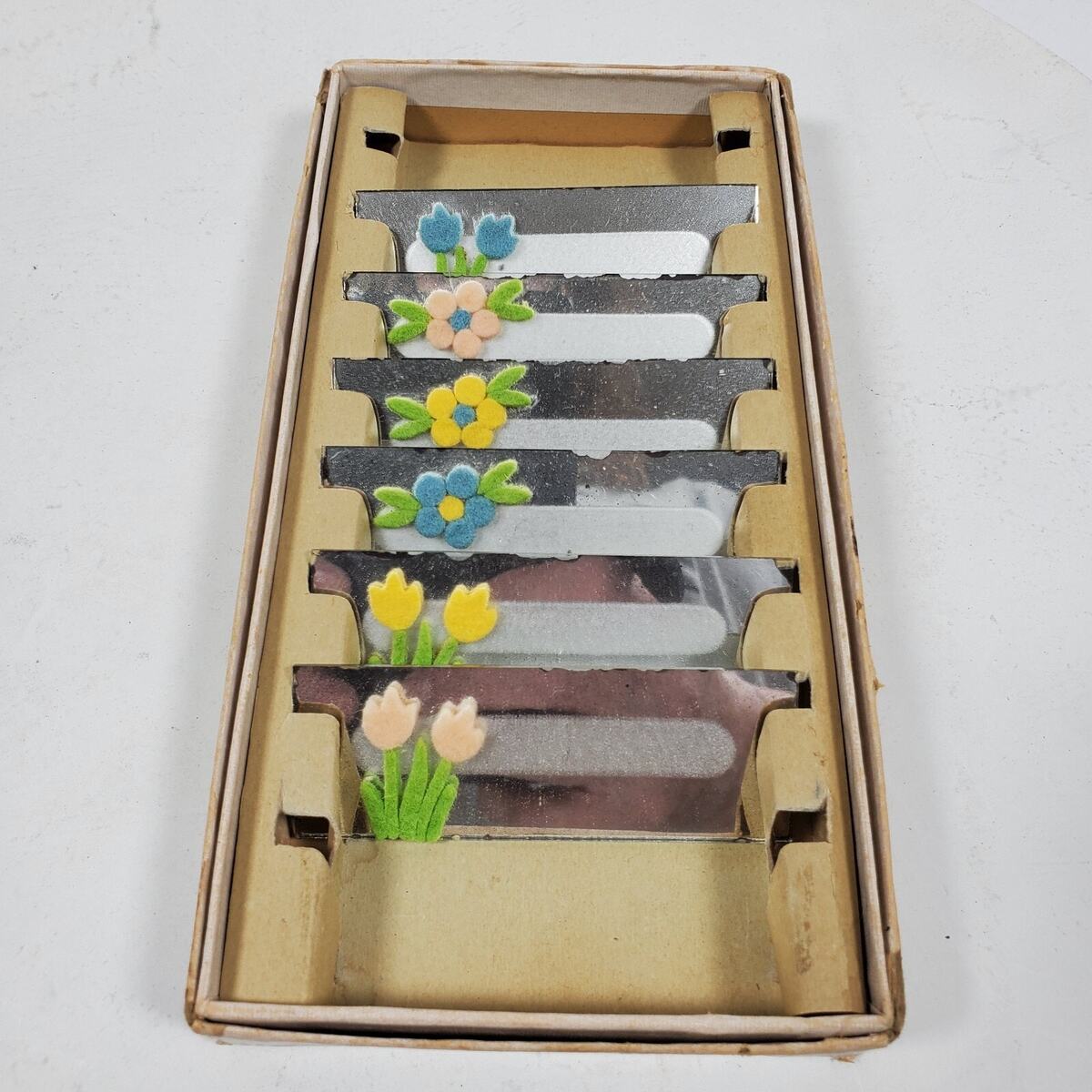 Vintage 1950 Six Glass Place Cards Floral Party Vintage in Box