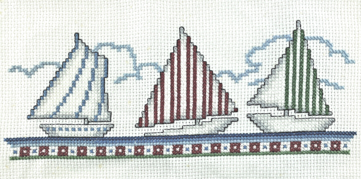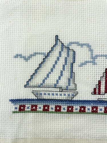 Finished Cross Stitch Sailboats Nautical and 25 similar items