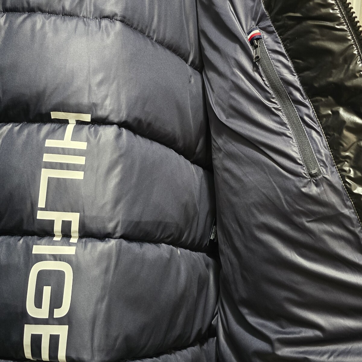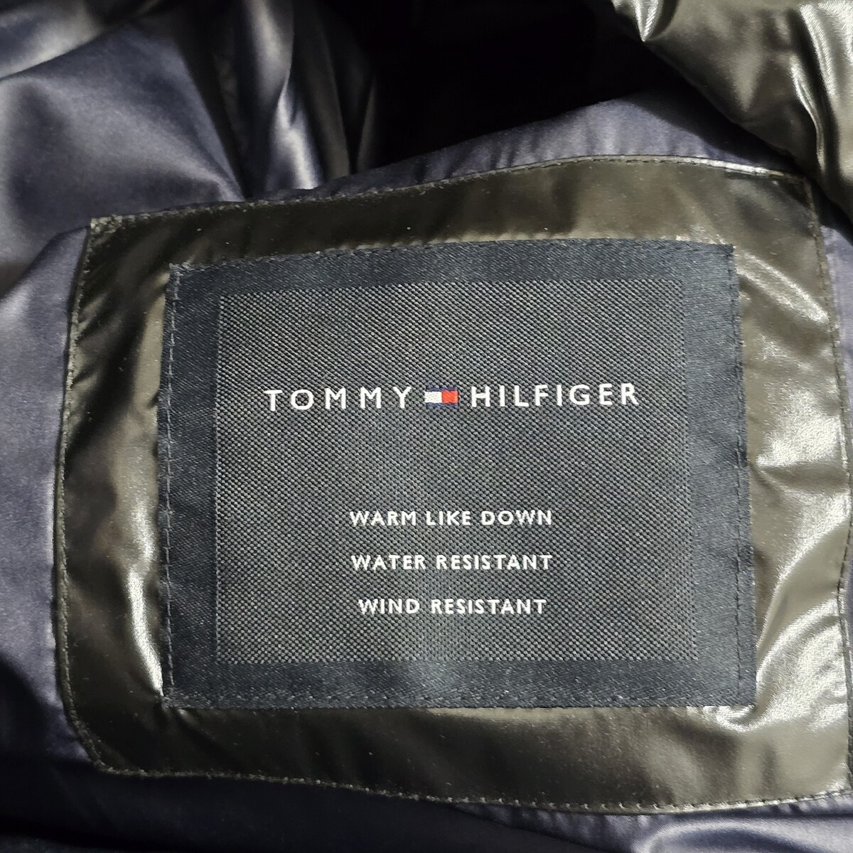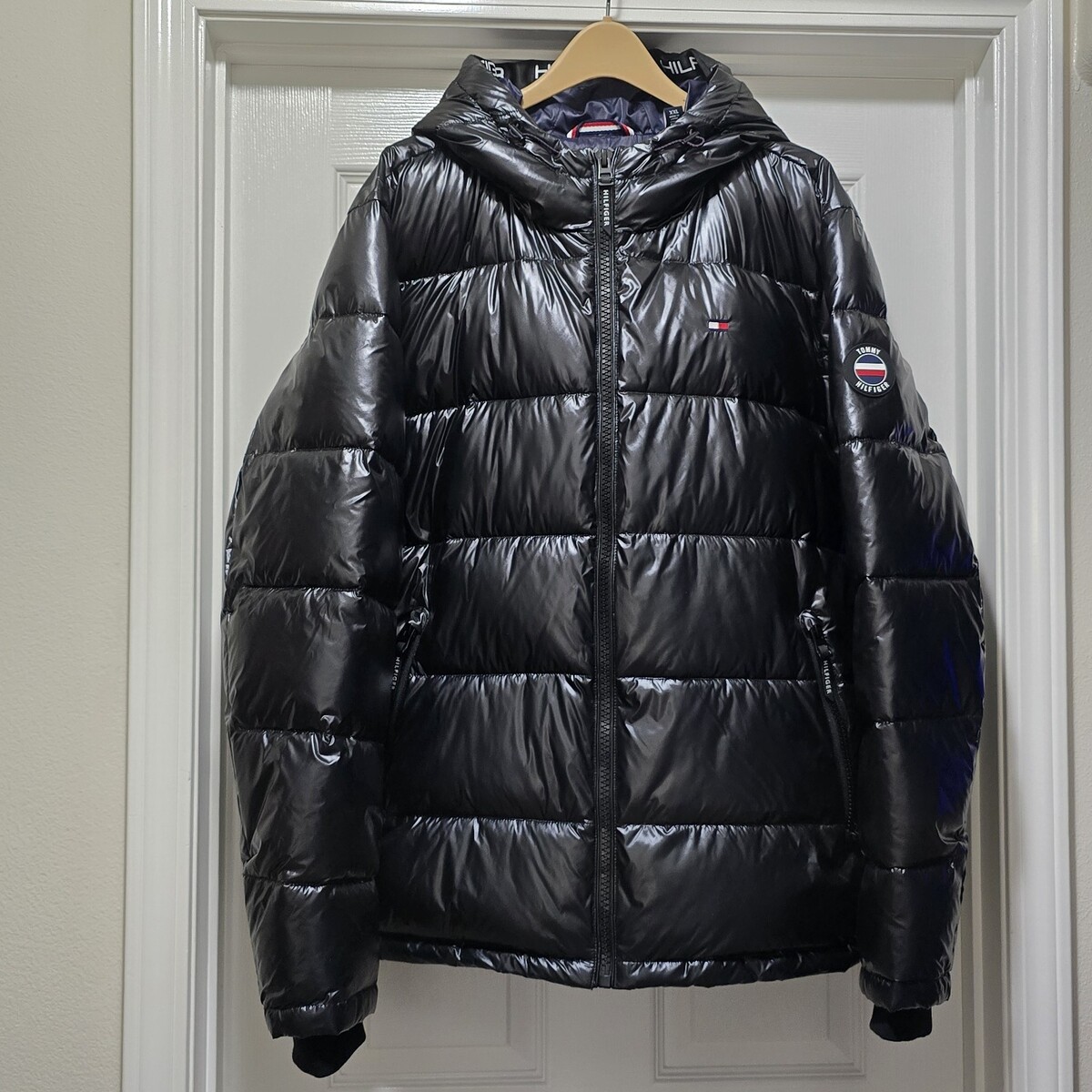Excellent Condition Tommy Hilfiger Pearized Hooded Puffer Jacket Men?s 2XL. Actual measurements: 59" chest, 31" lenth. Water / Wind Resistant.