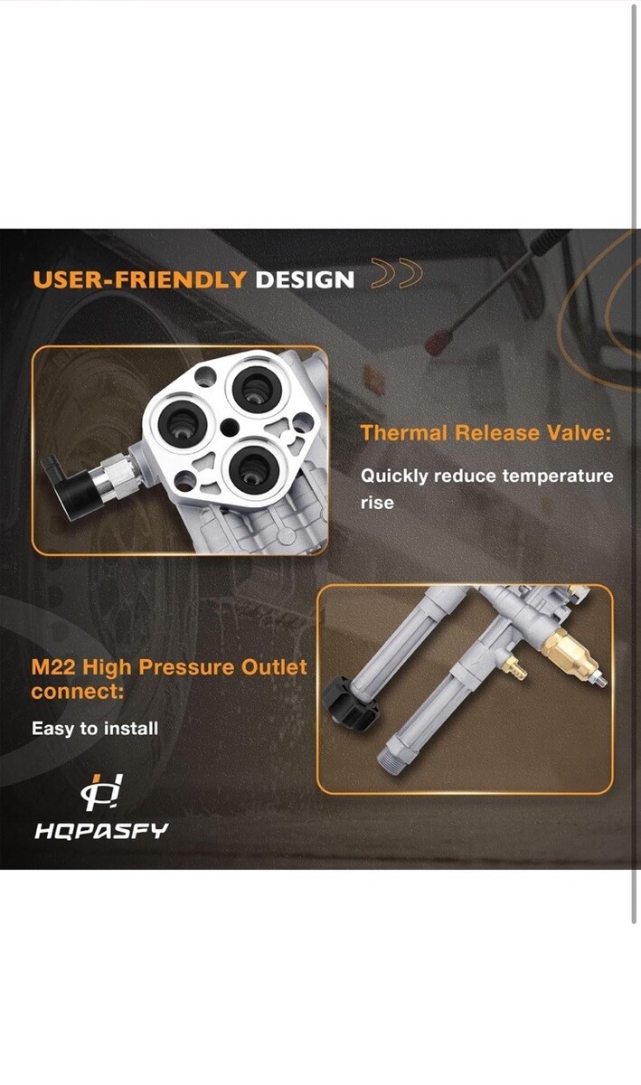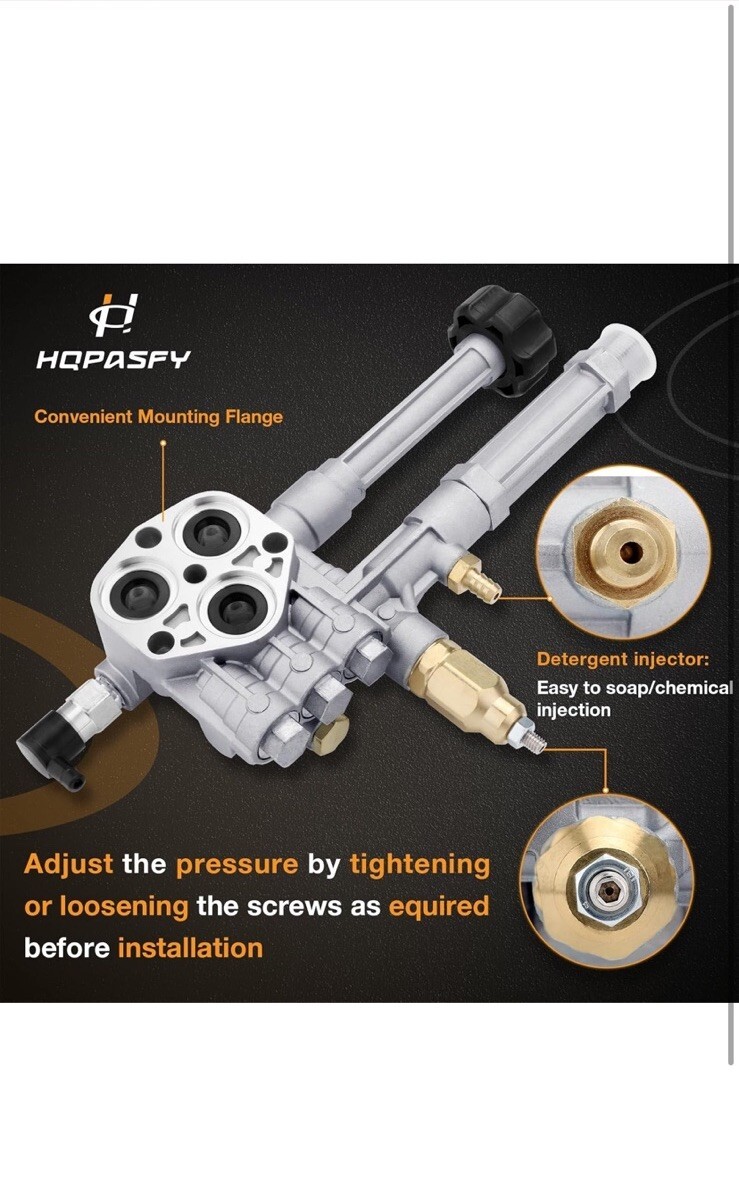 The product is a new Complete Pressure Washer Pump by GQPASFY, designed specifically for the RMW 2.2G24 and SRMW 2.2G26 AR42518 models. This Pump Head comes with a 1-year manufacturer warranty, ensuring the quality and reliability of the product. The pump is compatible with various models such as RMW2G20, RMW2.2G24, RMW2G23B, RMW2G24, RMW2G25, RMW2.2G20D, and SRMW2, making it a versatile option for outdoor power equipment users looking to replace or upgrade their pressure washer pump.