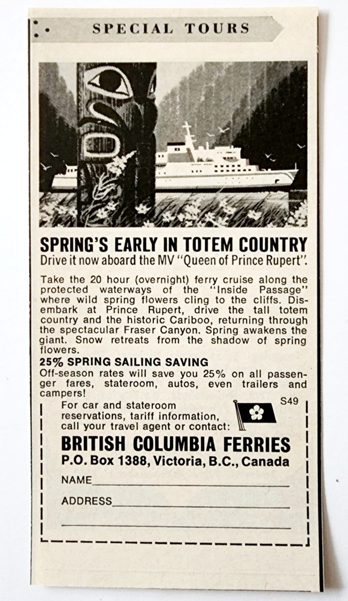 1969 Queen Of PR Rupert Cruise Ship Advertisement British Columbia Ferry G2B