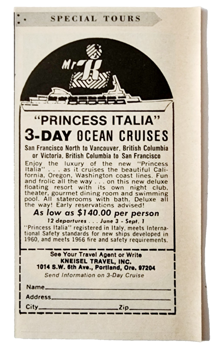 1969 Princess Italia Ocean Cruise Advertisement PAC NW Canada Vintage G2B