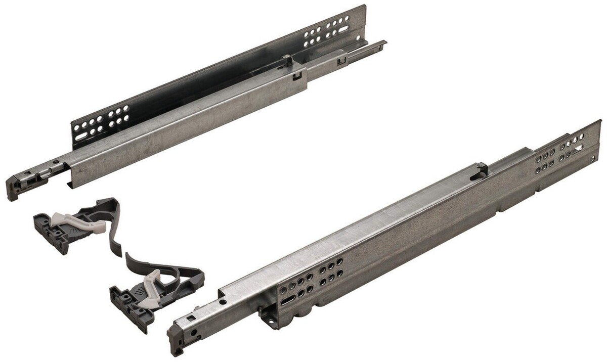 Upgrade your cabinetry with the Salice A7555 Futura 16 Concealed Undermount Drawer Slides. These heavy-duty drawer slides are engineered for smooth, quiet, and reliable operation. Featuring full-extension travel and an integrated soft-close mechanism, they provide complete drawer access while preventing drawers from slamming shut. Key Features: Heavy-Duty Capacity: Supports up to 75 lbs (35 kg), perfect for a wide range of kitchen, bathroom, and office drawers. Full Extension: Allows for full access to the entire contents of your drawer. Soft-Close Technology: Integrated dampening system ensures a smooth, silent close every time. Concealed Design: Undermount style keeps the slides hidden for a clean, professional look. Easy Installation: Includes front-disconnect clips for quick insertion and removal, plus built-in height and depth adjustments for a perfect fit. Certified Quality: BHMA Grade 1 Certified, meeting the highest standards for performance and durability. This product is made from sturdy zinc-finished steel and is compatible with frameless cabinets. Available in a variety of lengths to fit your specific needs. Product Details: Model: A7555 Futura 16 Type of Pull-Out: Full Extension Soft Close Function: Yes Load Capacity: 35 kg / 75 lbs Material: Steel Finish: Zinc Cabinet Compatibility: Frameless cabinet structures Mounting Location: Concealed undermount Adjustment Features: Height Adjustment: +3 mm. Depth Adjustment: Slotted hole Included Components: Pair of slides (left right), Front disconnect clips for easy drawer removal Available Sizes Cabinet Fit Info: Nominal Length Slide Length Drawer Box Length Minimum Cabinet Depth Required 10 Inch 10-1/2 Inch 9 Inch 10-3/4 Inch 12 Inch 12-3/8 Inch 12 Inch 12-5/8 Inch 15 Inch 15-3/8 Inch 15 Inch 15-5/8 Inch 18 Inch 18-3/8 Inch 18 Inch 18-5/8 Inch 21 Inch 21-3/8 Inch 21 Inch 21-5/8 Inch Recommended Applications: Closet Drawers: Streamlined and quiet drawer access in bedroom or walk-in closet systems Kitchen Cabinets: Heavy-duty performance in high-use kitchen drawers Bathroom Vanities: Concealed, corrosion-resistant slides ideal for moisture-prone areas Home Office Filing Cabinets: Supports heavy loads like files, supplies, or electronics Workshop/Garage Cabinets: Built to handle tools and other heavy-duty items
