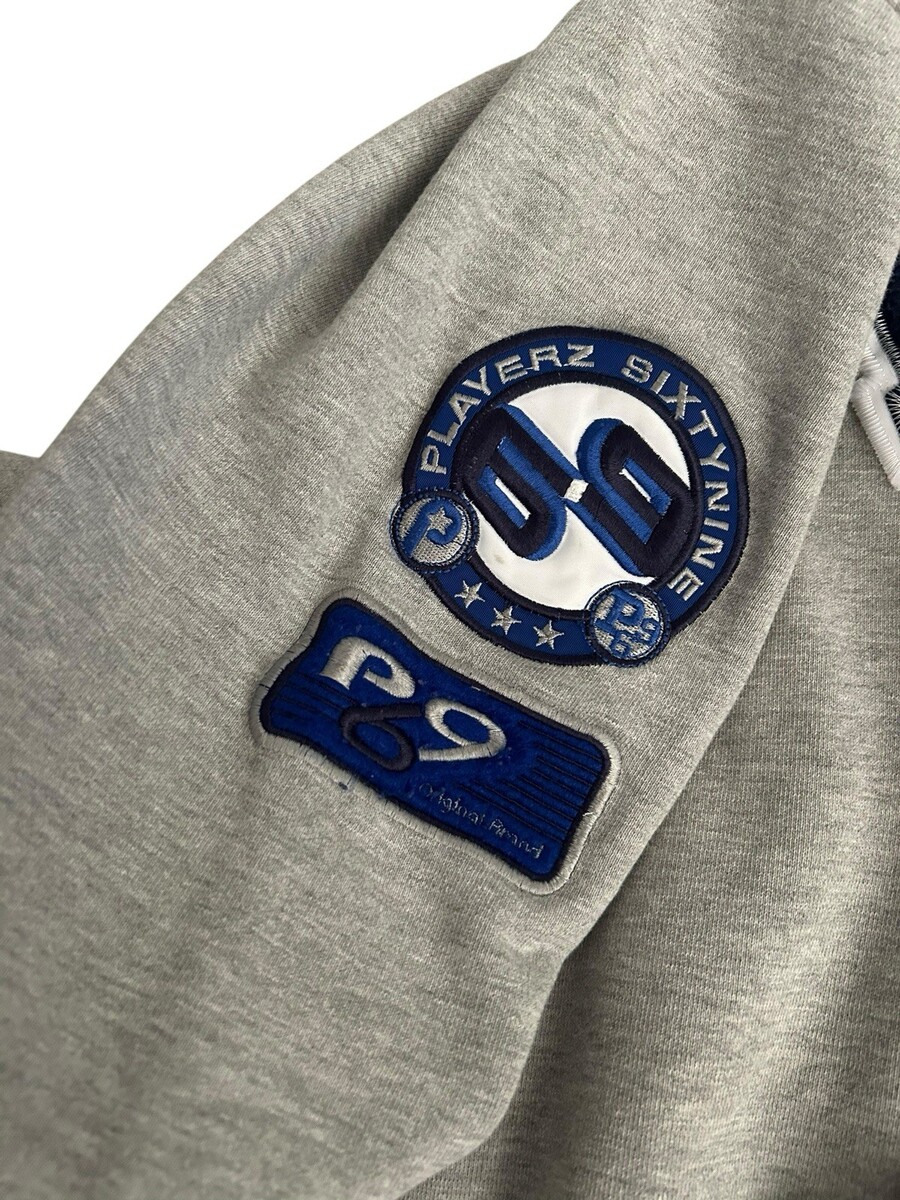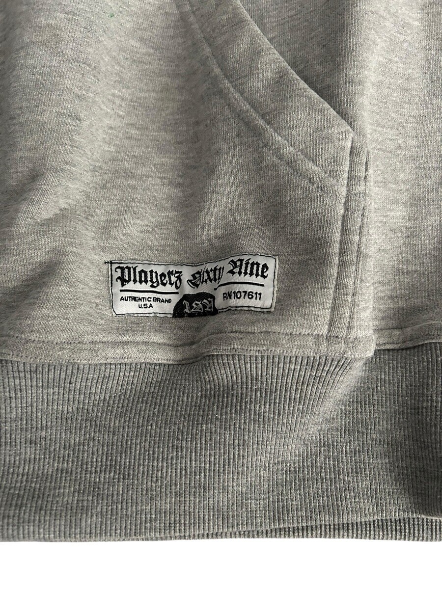 Vtg Playerz 69 hoodie, Gray Lowrider 90s hip-hop Sweater 1990s size 2XL Rare