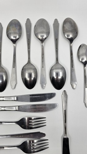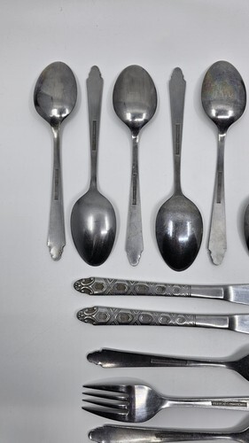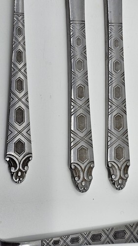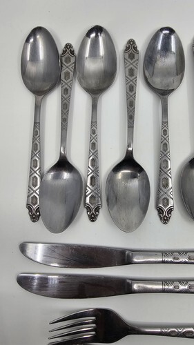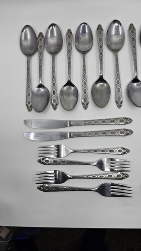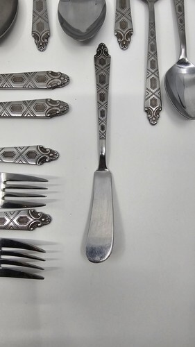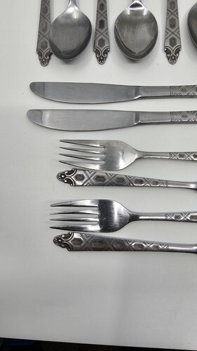 Flatware has light toning, could use a polishing with any stainless steel cleaner