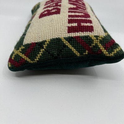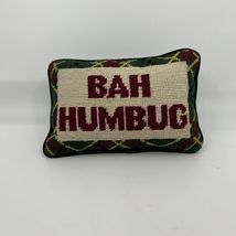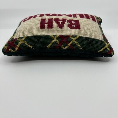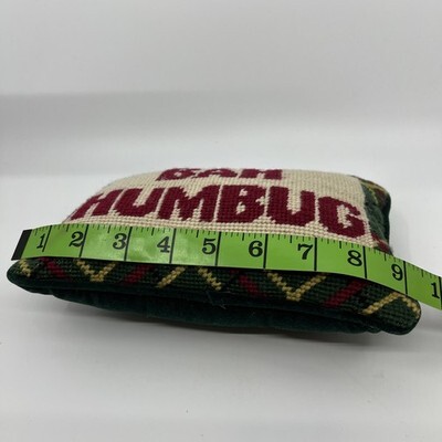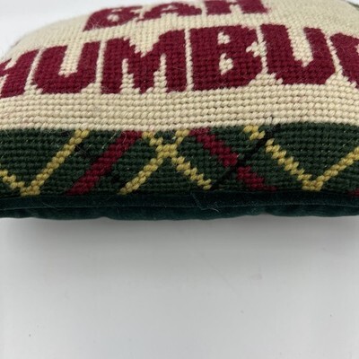 Bah Humbug Needlepoint Christmas Holiday Pillow 9" x 6.5" Green Velvet Cottage