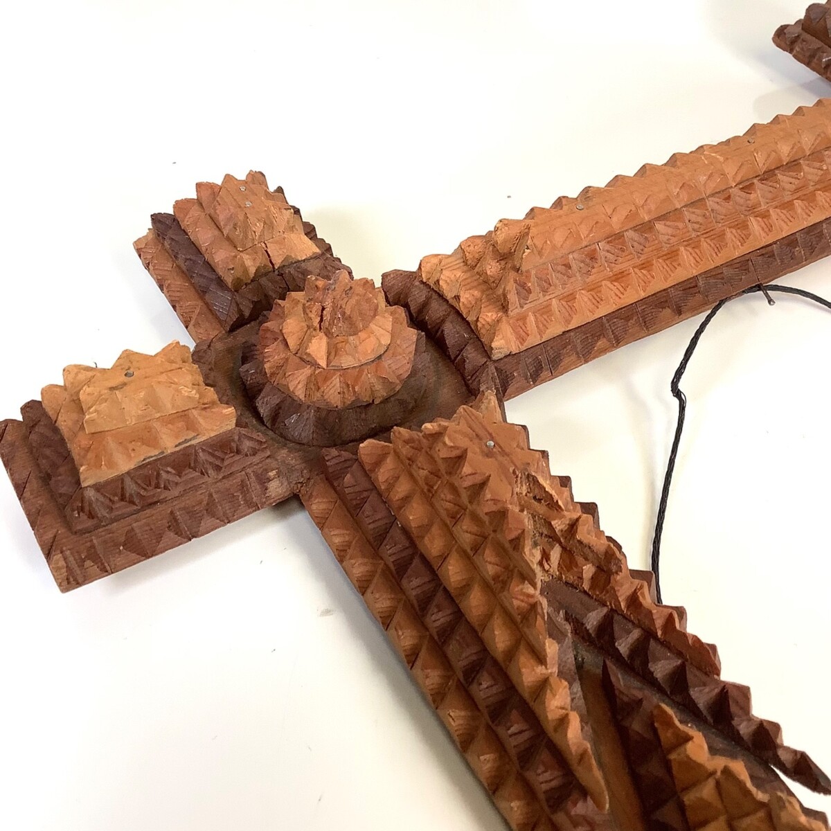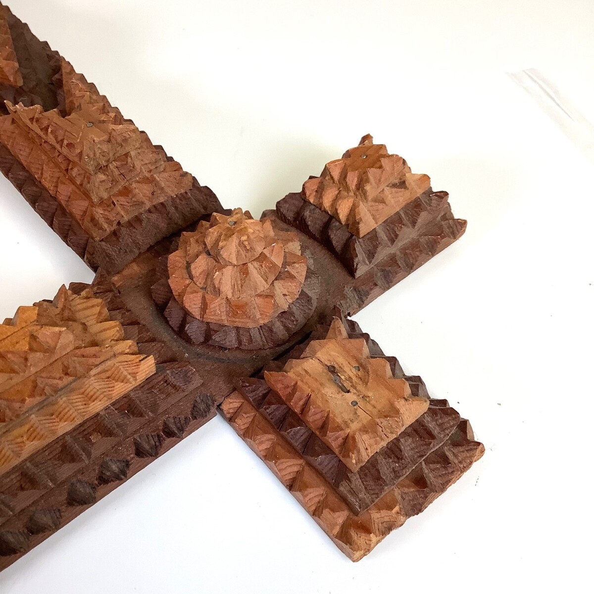 Antique Tramp Art Folk Wood Frame 7.5?x9.75? Opening Vtg Primitive Hand Carved. Beautifully carved and layered antique tramp art frame. Does have a few small chips off of a few of the small sharp edges, and in some spots it has five layers and others it is only four (very hard to tell looking at it from straight on) but overall nice condition for its age. Measures approximately 15 inches wide by 17.5 inches high and for the photo opening it measures approx. 7.5 inches wide by 9.75 inches high. Please see all photos.