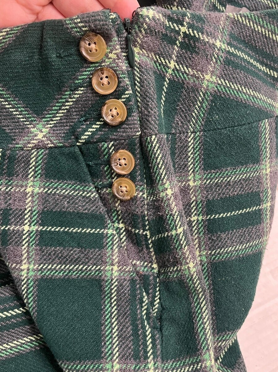 Ann Taylor Skirt Size 2P Petites Green Plaid Cotton Woven Kick Pleat Vintage