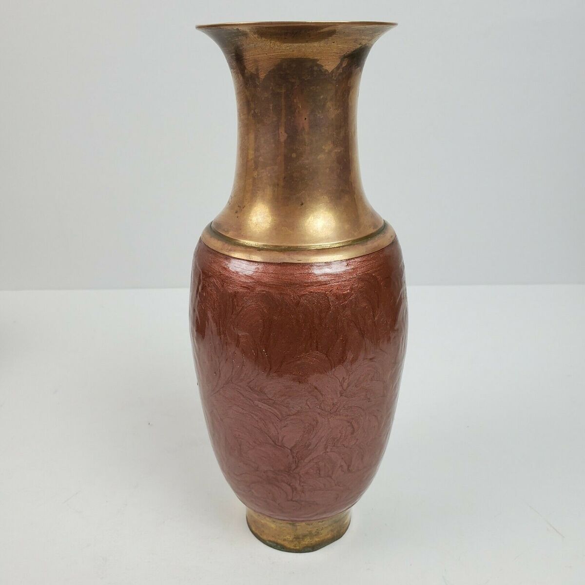 Vintage Mid Century Modern Solid Brass Foundry Vase ART Hand Painted Mauve Sides