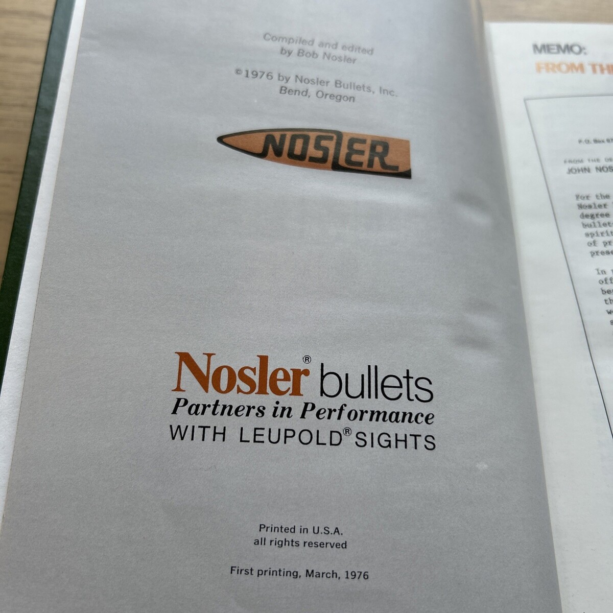 1976 NOSLER RELOADING MANUAL NUMBER ONE, FIRST PRINTING